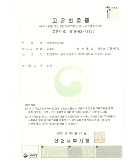 국제공익사업단은 수익사업을 하지 않는 비영리 법인 및 국가기관입니다.